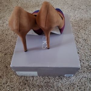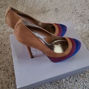 These are a size 8 women's heels. They are multicolor and have only been worn 5 times.