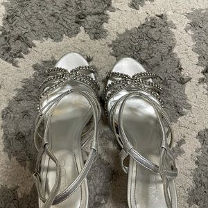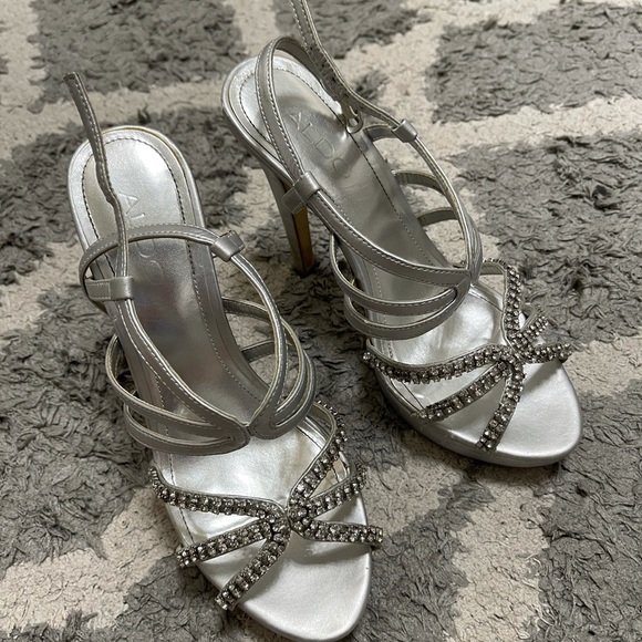 Women’s Aldo silver heals. Bottoms and heal scratched up, front in good condition. Size 38 (size 7.5)