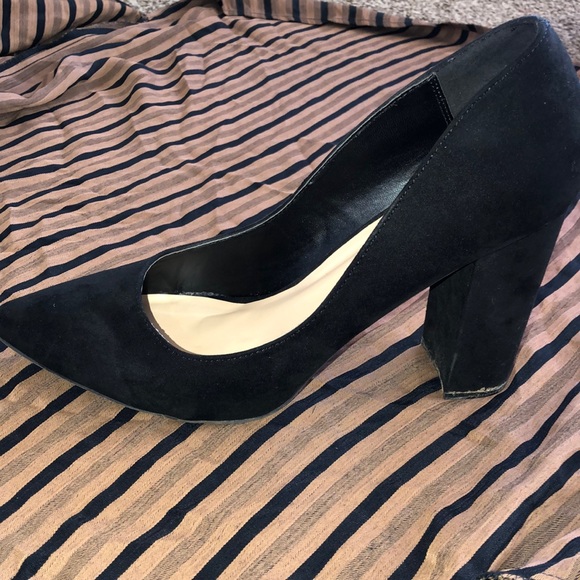 Black painted suede heels