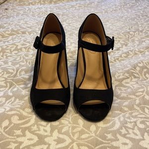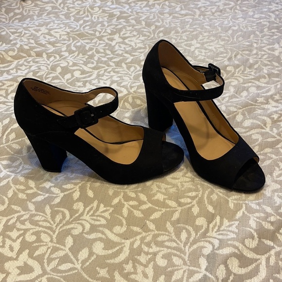 Black suede heels with ankle strap