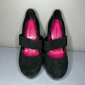 Mary Jane high heels, they are a soft material and have a stretchy strap on them.