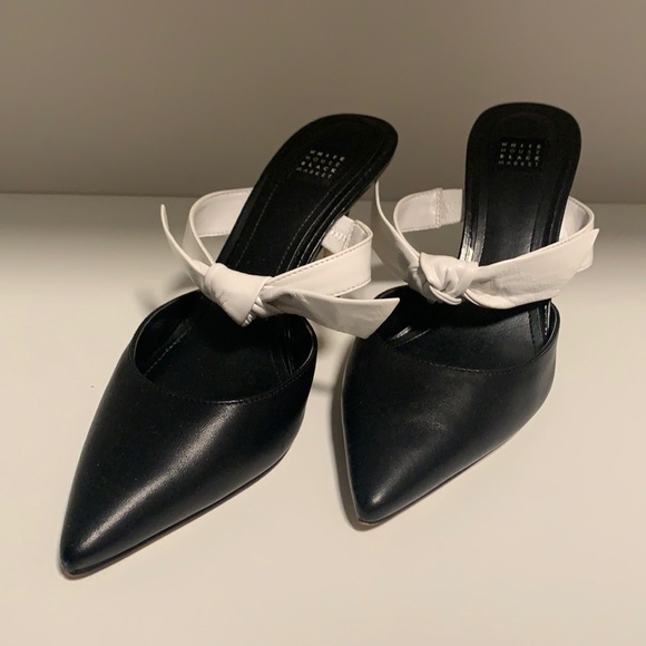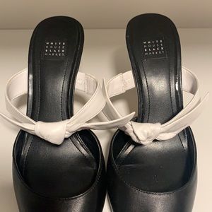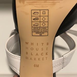 White House Black Market Heels Super Chic Black Pointed Toe Heels with White Box Strap