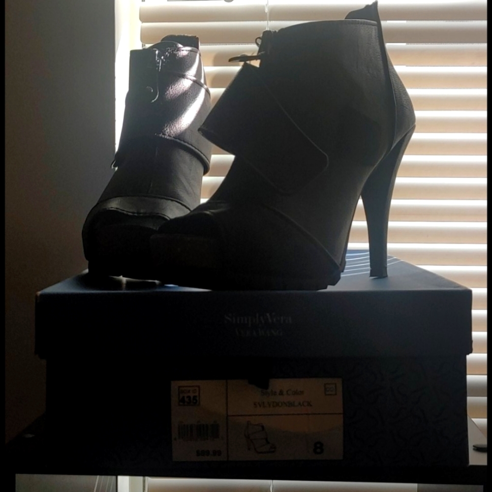 Gently used black leather open toe heels with front zipper and velcro side strap over