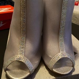 Silver heels for formal attire brand new size 6 toes out in front zipper in back