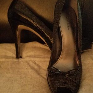 4.0 Marc Fisher never worn heels. With a bow peep toe front, black patent and nice design on top.