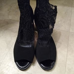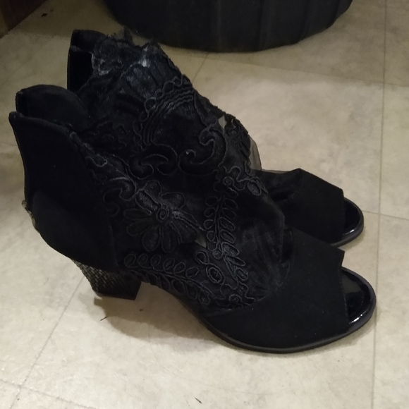black suede heels brand new, too small for me. never worn out.