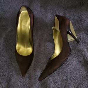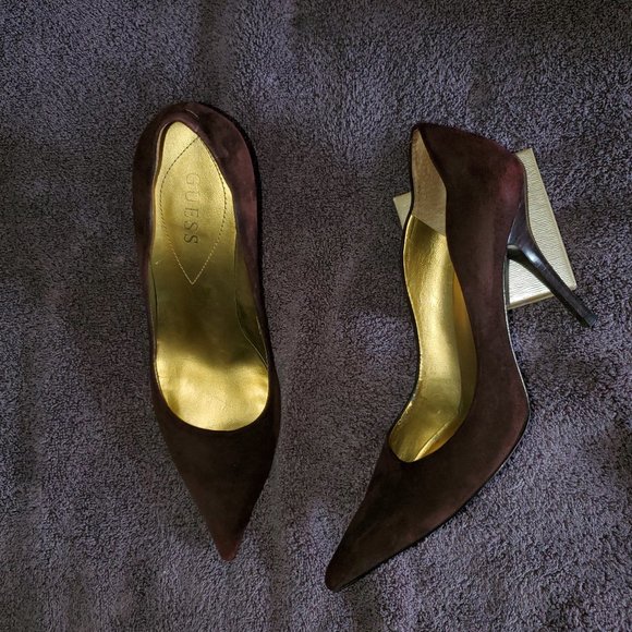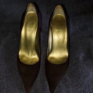 Guess brown with wood heel