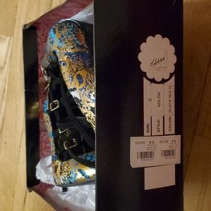 Beautiful multi colored gold high heels by Privileged for Charlotte Russe. Never worn, I only tried on. New in box, although box is beat up. These are truly gorgeous in person and on.