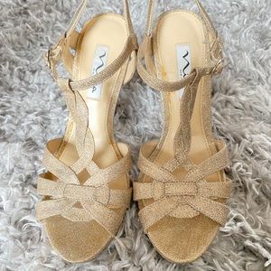 Light gold/champagne color. Wore once! Excellent condition! 5” tall