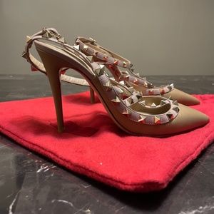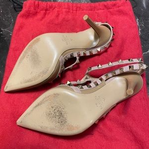 Valentino Garavani Rockstud ankle strap pump in leather.