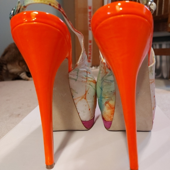 @socaljlr about 5.5" I love them! really pretty, if you like colorful heels, you'll love them too, and it's comfortable for being heels. selling it so someone else can enjoy them too. I only used them couple of time.