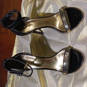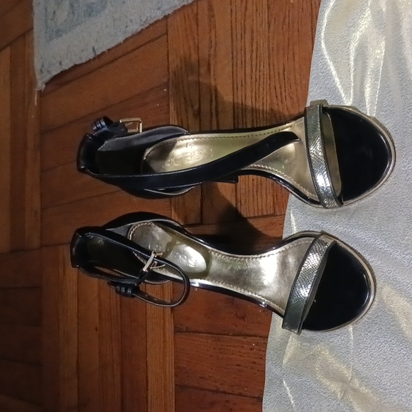 black and gold Guess heels at least 3". worn 2 but in excellent condition