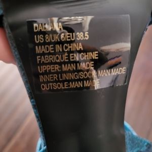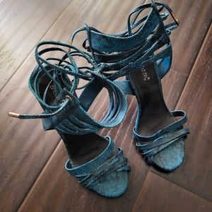 Heels size 8 only worn once 3"+ heels. Turquoise snake pattern