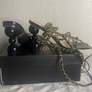 Black strap up the ankle heels worn once
