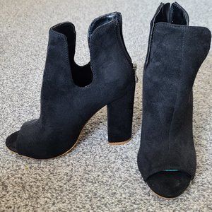 Never worn, black velvet, chunky heel, zipper in the back/heel.