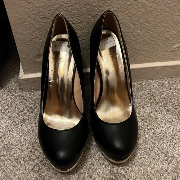 Black heels, never worn, in good condition