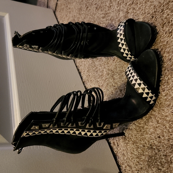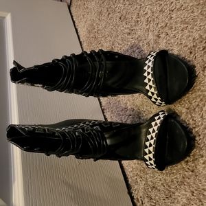 Paper Fox. Black & white heels with straps. Size 8.