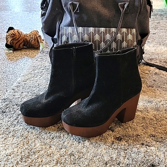 black and brown thick boots