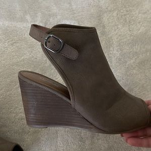 Brown heels. These are so cute, worn them 2/3 times for different events. Super comfortable and easy to walk in! These run a little small. I normally wear an 8, and these are 8.5
