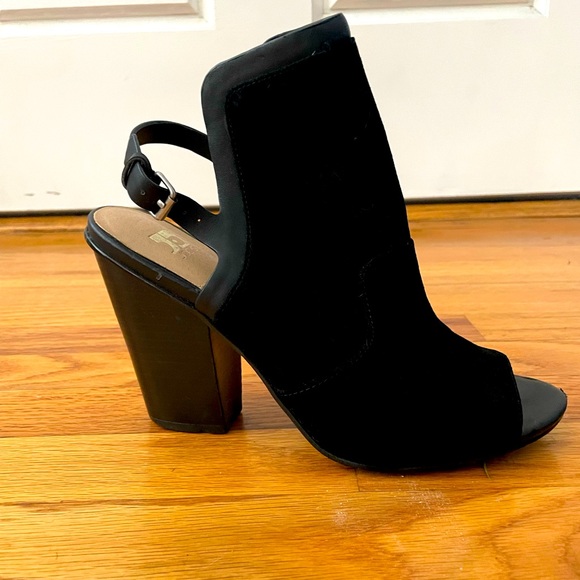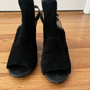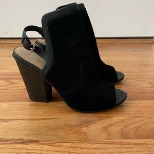 Joe’s black suede (outer) and leather (inner and strap) heels with metal clasp. Great condition, only worn a few times.