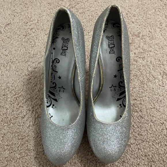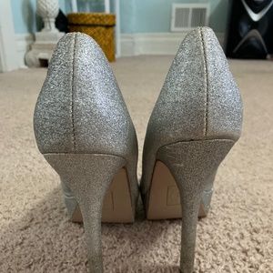 These are very sparkly shoes! I personally used them for homecoming! They heel is about 3 inches.