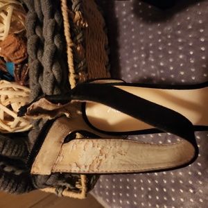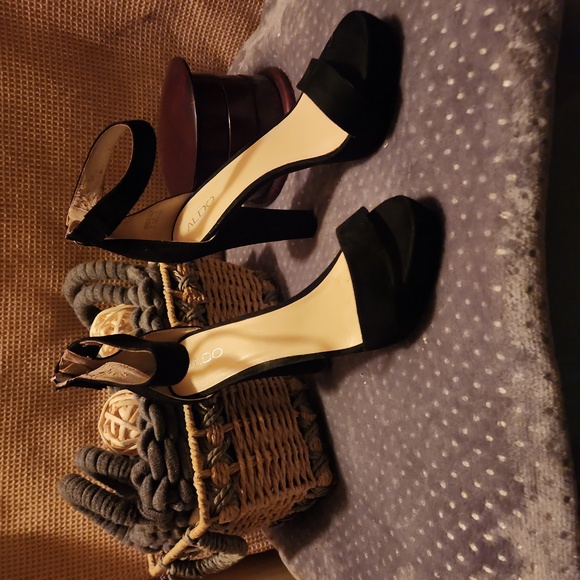 These are brand new and paid $80 but wore outside just while trying on to make sure they weren't slippery. However, I packed them away and just forgot about them. As ya see in pictures the inside got dry and is rubbing off!! ya can just finish rubbing off but I wanted to show just so ya knew the truth!! but a beautiful chunk heel wrap around ankleand faux Swude