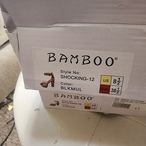Bamboo block heels luxury print size 8.5 narrow fit.