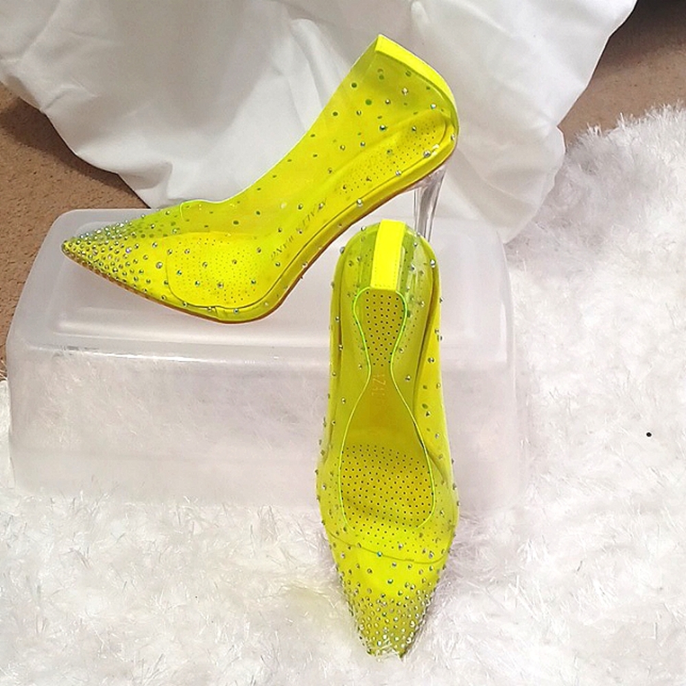 Florissant Yellow Plastic multi-colored Rhinestones heels