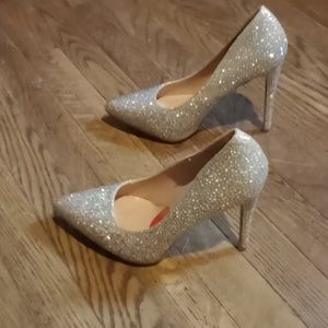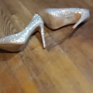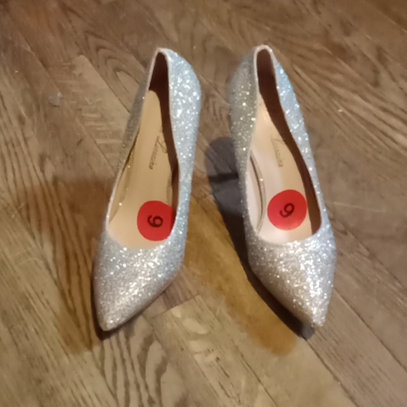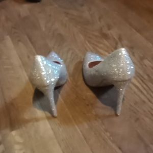 these are brand new prom or wedding shoes whatever you prefer they're brand new have the sticker on the bottom with the price have the sticker inside that says the size don't have the box I just don't need them anymore