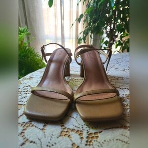 nude block heel with adjustable ankle. Great for wide feet!