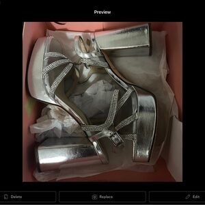 Only worn once silver chunky heel. Size 5 in women’s