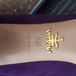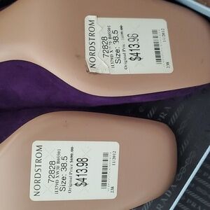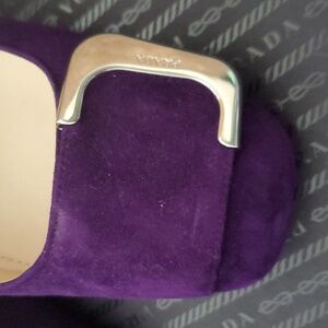 Beautiful, royal purple suede, block heel, silver buckle detail on square toe box.
