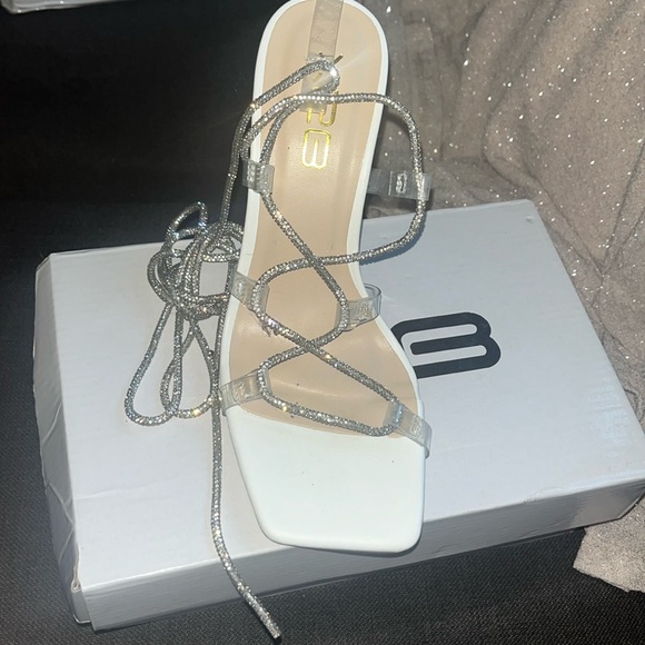 White heels size 5.5 color white and silver is in good condition never used