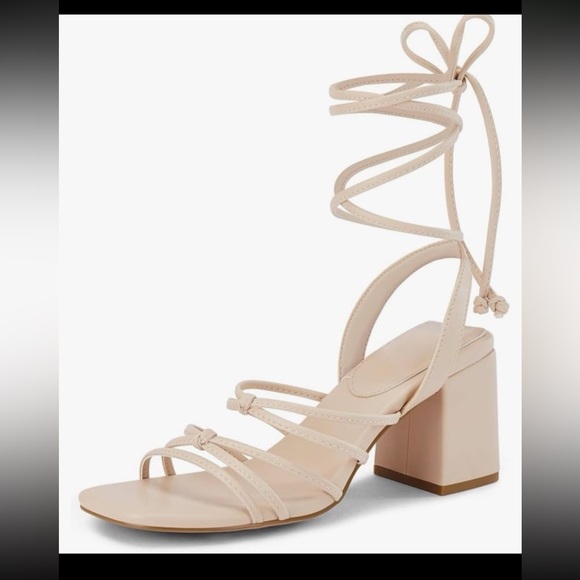 Coutgo Women's Strappy Chunky Heels Sandals Lace Up Block Heel Square Open Toe 25 on Amazon