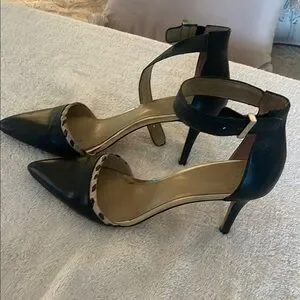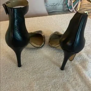 Leather heels with a leopard trim, black leather ankle strap 4 inches