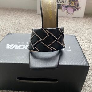 Black heel with sparkles, 3.5 inch heel and size 6. Heels were never worn great condition!