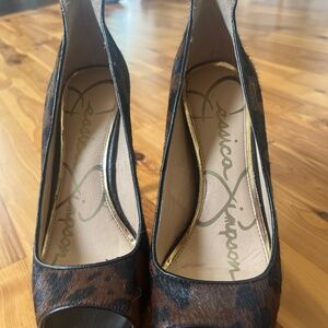 Beautiful , adorable and fun to wear, Jessica Simpson leopard print stilletos..worn once to an event…no longer needed…does no go with my style today..