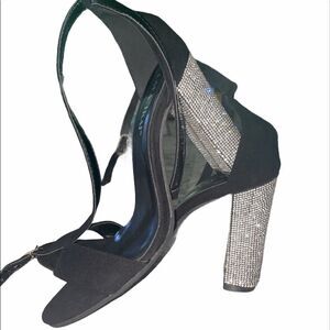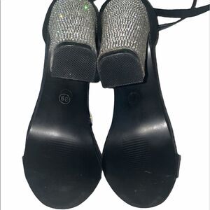 Black suede heels With a block heel all strassed In new condition Size 39