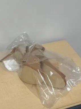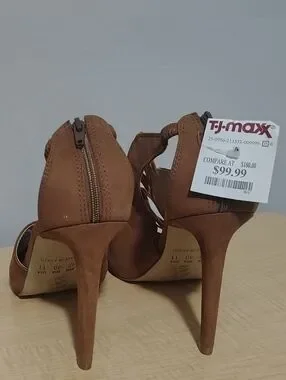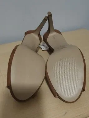 NWOB Stephanie tan heels with pink and yellow bands through the middle. Size 11/42. Please ask any and all questions previous to purchase. All sales are final.
