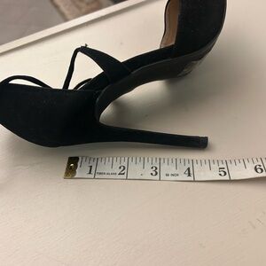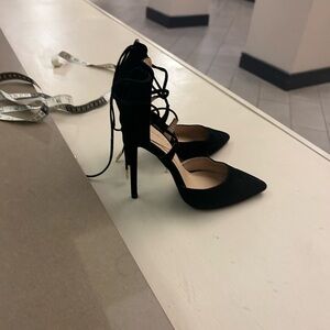 Elevate your look with these chic black lace-up heels. Perfect for any occasion, they combine style and comfort effortlessly. Clean!!