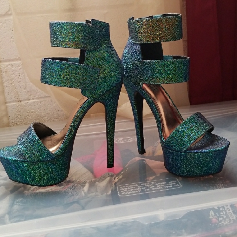 Metallic multicolored heels Blue/greenish/yellowish. Sparkly heels very very pretty. Tall stilettos. New no box.