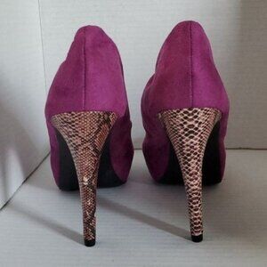Heels Stilettos Pumps Shoes PURPLE Peep Toe Vegan Snakeskin Women's WOMAN'S 9