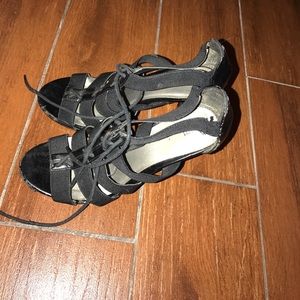 Cute heels that tie at the top! Pretty good condition. Go with jeans or dresses!