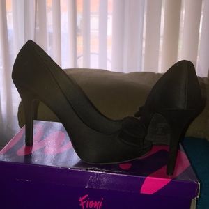Sued black heels worn a few times, still like brand new. Bow/tie in front