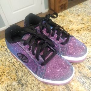 Heelys Girls Split Purple Aqua Skate Shoes Glitter Roller Shoes Size Youth 4