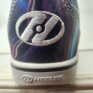 Vibrant Heelys roller shoes with a multicolor design. Features white laces and logo. 9.75" long outside sole Clean inside and out.