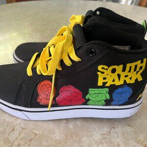 Heelys Racer South Park Shoes in size 8 mens/9 womens, were made in collaboration with the popular tv show, South Park! They are cool, fun, and simple to use with a wheel in each heel so that you can zip around on the go.
