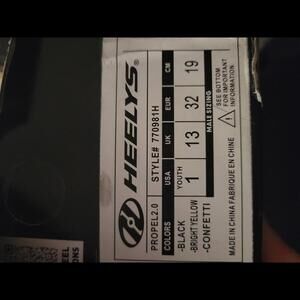 Heelys kids size 1 black & bright yellow Propel 2.0