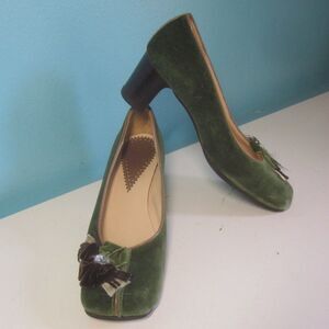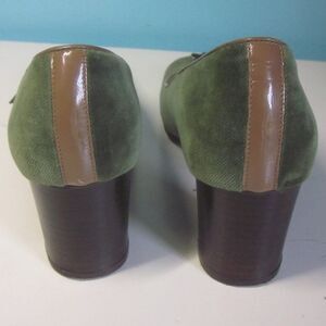 Hegos Italian Made Womens Size 39 / 8.5 Vintage Square Toe Green Chunky Heels