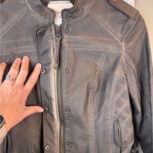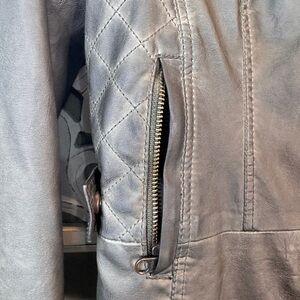 Hei Hei Faux Leather Jacket Zip Button Quilted Small Gray